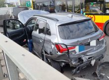 Na moście Łazienkowskim w kierunku Pragi doszło do zderzenia trzech pojazdów; mitsubishi, volkswagena i toyoty. Nikomu nic się nie stało. Łukasz Kowalski