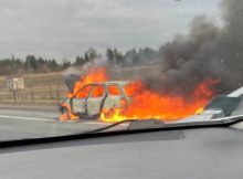 Na trasie S2 na wysokości Palucha w kierunku Konotopy doszło do pożaru samochodu osobowego. Pojazd był cały objęty ogniem. Jedna osoba doznała lekkich poparzeń podczas gaszenia auta. Została