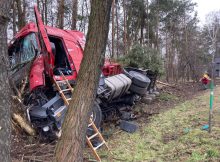 W miejscowości Zawiszyn (pow. wołomiński) na drodze krajowej numer 50 doszło do wypadku dwóch pojazdów ciężarowych. Jeden z pojazdów zjechał do rowu i uderzył w drzewo. Jeden z