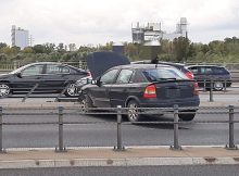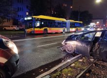 Na moście Grota-Roweckiego w na pasach tranzytowych w kierunku Marek kierujący samochodem osobowym marki opel uderzył w barierki, a następnie zderzył się z toyotą. Nikomu nic się nie