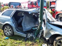 W alei Stanów Zjednoczonych na Pradze-Południe w kierunku Ostrobramskiej doszło do zderzenia dwóch samochodów osobowych marki lexus i BMW. Po zderzeniu BMW padło na latarnię. W pojeździe zakleszczony