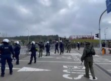 Tłum migrantów przekroczył przejście graniczne w Kuźnicy. Osoby zostały zatrzymane przez polskie służby i kontynuują swoją drogę wzdłuż ogrodzenia. Służby Białoruskie przywożą migrantom pod granice materiały pod obozowisko.