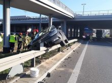 Chwilę po godzinie 11 na zjeździe z trasy S8 na Wisłostradę w kierunku Łomianek kierujący samochodem osobowym marki volkswagen passat nie dostosował prędkości do warunków panujących na drodze