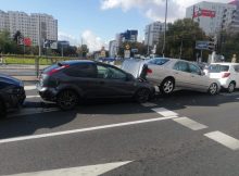 W al. Niepodległości na skrzyżowaniu z Woronicza doszło do zderzenia czterech samochodów osobowych. Jedno z aut zawisło na masce drugiego. Nikomu nic się nie stało. Łukasz Kowalski
