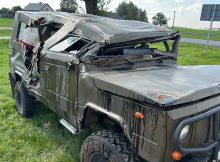Na krajowej „7” w miejscowości Strubiny (pow. nowodworski) doszło do dachowania wojskowego pojazdu. Ranny został kierowca, któremu pomocy medycznej udzieli strażacy. Łukasz Kowalski