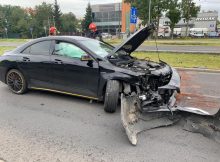 Na ulicy Połczyńskiej 87 w kierunku centrum doszło do zderzenia dwóch samochodów osobowych marki mercedes i peugeot. Jedno z aut wjechało w barierki. Uszkodzone zostały one na długości