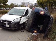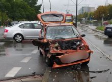 Na skrzyżowaniu ulicy Gniewkowskiej z Armatnią na Woli doszło do zderzenia dwóch samochodów osobowych marki dacia i peugeot. Po zderzeniu jedno z aut wylądowało na boku i uderzyło