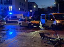 Na skrzyżowaniu Kasztanowej z Portową na Białołęce doszło do zderzenia samochodu osobowego marki mercedes z policyjnym nieoznakowanym busem marki fiat ducato. Policjant z obrażeniami ciała trafił do szpitala.