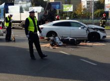 Na skrzyżowaniu al. Niepodległości z Woronicza na Mokotowie doszło do poważnego zderzenia samochodu osobowego marki volkswagen z motocyklem marki kawasaki. Kierujący jednośladem nieprzytomny, w stanie krytycznym trafił do