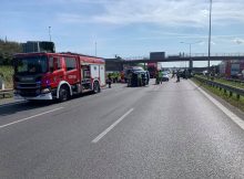 Na trasie S8 na wysokości Radiowej na Bemowie w kierunku Poznania kierujący samochodem osobowym marki mitsubishi nie dostosował prędkości do warunków panujących na drodze i wjechał w barierki