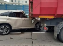 W Al. Prymasa Tysiąclecia w Warszawie, w kierunku trasy S8, na wysokości stacji PKP Koło, doszło do groźnego zderzenia samochodu osobowego Lexus z ciężarówką Volvo. Lexus wbił się