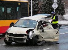 W miejscowości Grzędy pod Warszawą doszło do groźnie wyglądającego zderzenia samochodu osobowego z tirem. Mimo, że przód auta został zmiażdżony, a dach urwany, w wypadku nikt nie ucierpiał.