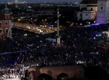 Na Placu Zamkowym morze ludzi i morze światła. Uczestnicy manifestacji włączyli telefony, by pokazać ilu zwolenników Unii Europejskich pojawiło się na wydarzeniu. Michał WierzbickiRedaktor naczelny serwisu. Absolwent Wydziału