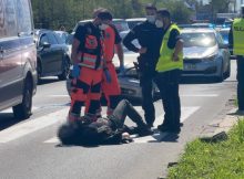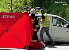 Najpierw osobowa toyota zderzyła się z samochodem dostawczym, a po kilku minutach doszło do zdarzenia tragicznego w skutkach. Niestety, w jego wyniku zmarł motocyklista. Jak się okazało to