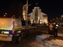 „W nocy z 13 na 14 lutego nieznani sprawcy dokonali dewastacji na terenie kompleksu parafialno-cmentarnego. Na drzwiach kościoła, filarach i tablicach pamiątkowych, wmurowanych w ściany kościoła, namalowano 10