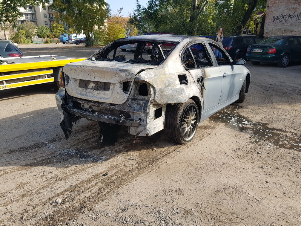 Na dzikim parkingu, jakich w okolicy wiele (kierowcy parkują na każdym wolnym skrawku zieleni) doszło do pożaru samochodu osobowego marki BMW.