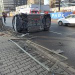 Auto z wypożyczalni wylądowało na boku. Są ranni