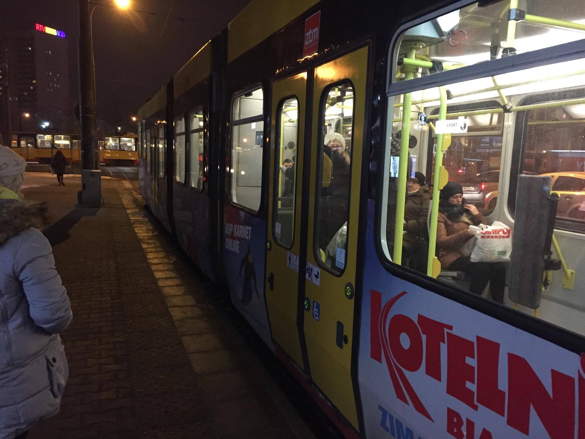 Awaria tramwaju przy Rondzie Wiatraczna. Tramwaje w stronę centrum stoją