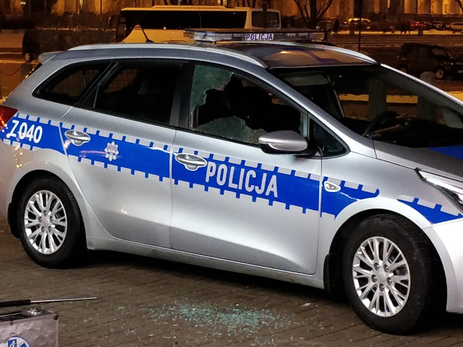 W trakcie ucieczki na wysokości Marszałkowskiej stał radiowóz. Mężczyzna biegł i uderzył tymże przedmiotem w szybę radiowozu.