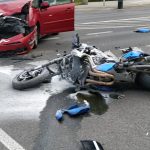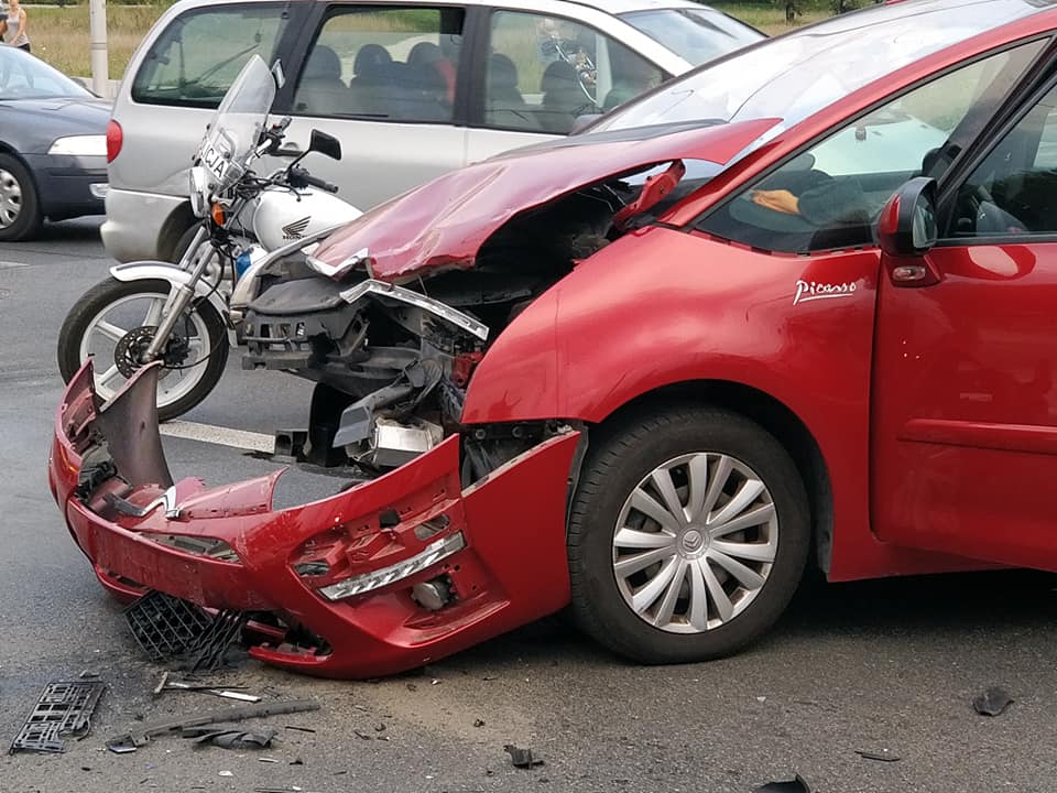 Białołęka: motocykl kompletnie zniszczony. Poważne zderzenie z motocyklistą