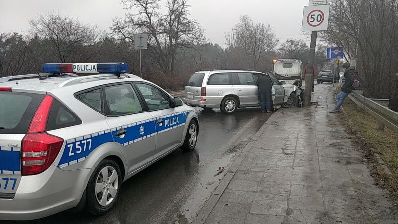 Białołęka: opel wjechał w latarnię. Wprowadzono ruch wahadłowy