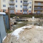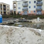 „Tak wygląda budowa nowych bloków na Skarbka z Gór 136 wybiły wody gruntowe głębokość ok 1.5 m (…) Nie dosyć ze budują w bagnie to przy okazji zostało rozwalona i powyrywane rury drenażu bloków 134 !!!!!” – alarmuje jeden z mieszkańców.