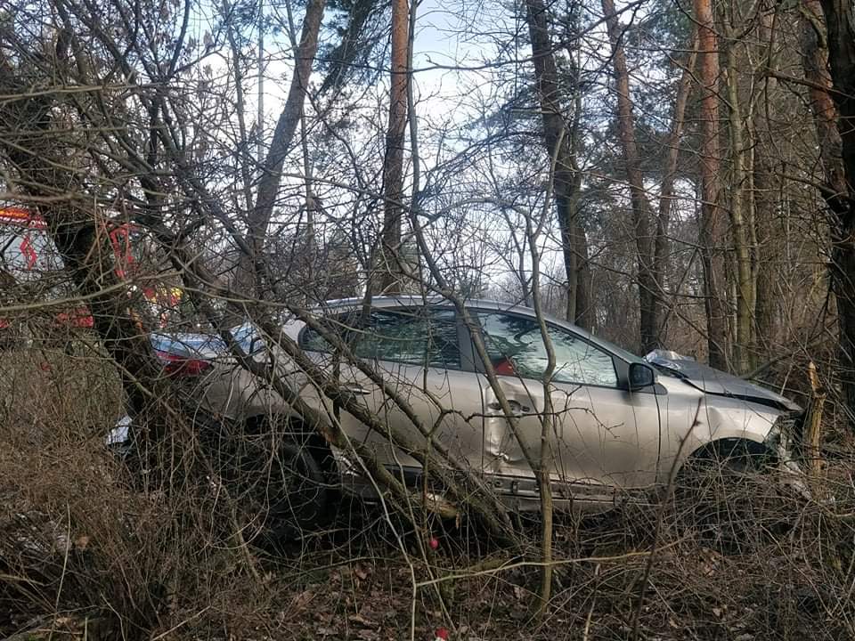 Na ulicy Płochocińskiej na wysokości Białołęckiej kierowca renault starcił panowanie nad kierownicą i wjechał w mały las. Zaciął kilka drzew i krzaków.