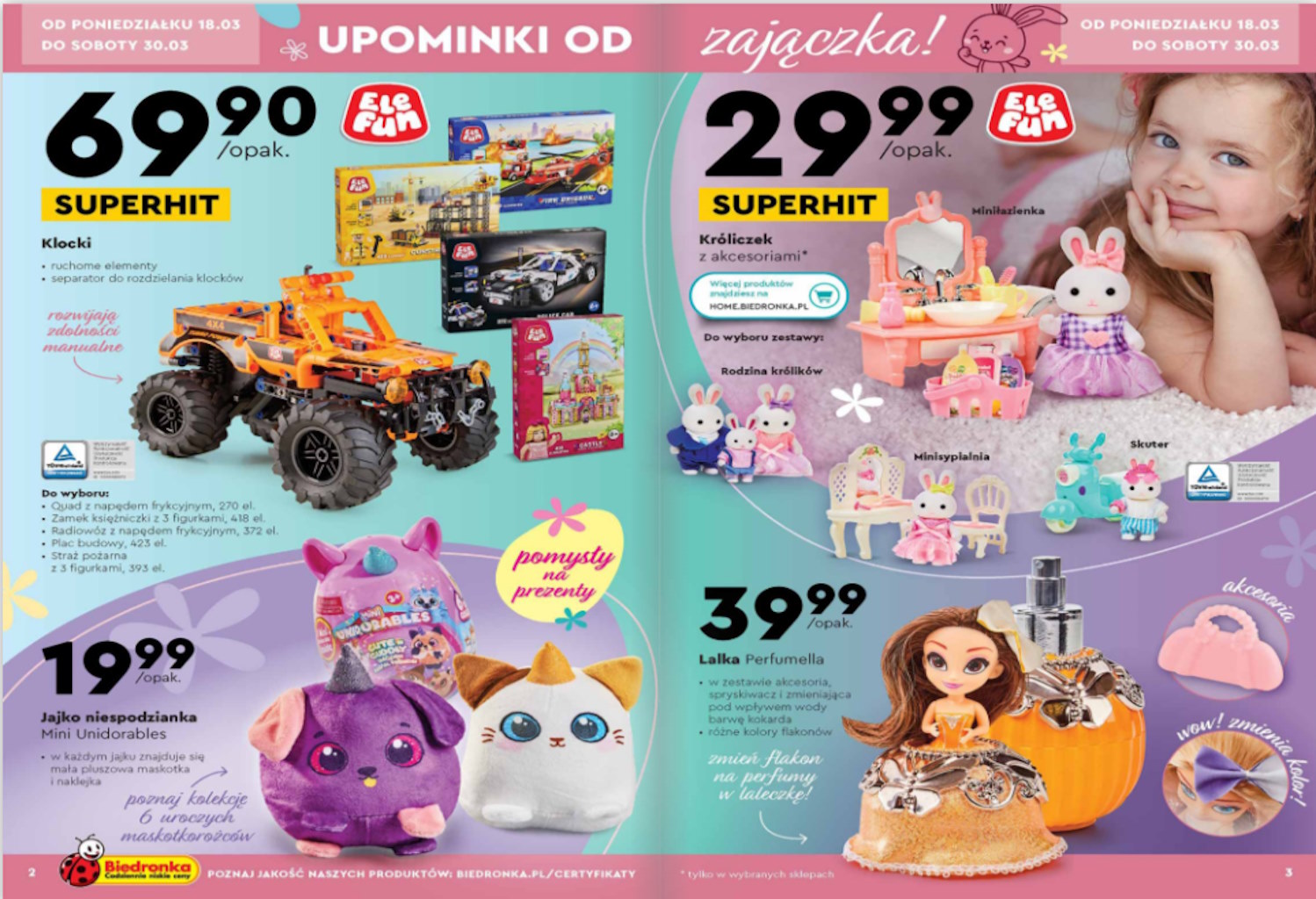 Wiosna jest czasem odnowy i radości, a Biedronka wita ten świeży początek roku kalendarzowego wyjątkową ofertą świąteczną „na zajączka”, która startuje w poniedziałek. Sieć sklepów przygotowała promocje, które z pewnością przyciągną rodziców i ich pociechy, poszukujących idealnych upominków na nadchodzące Święta Wielkanocne.