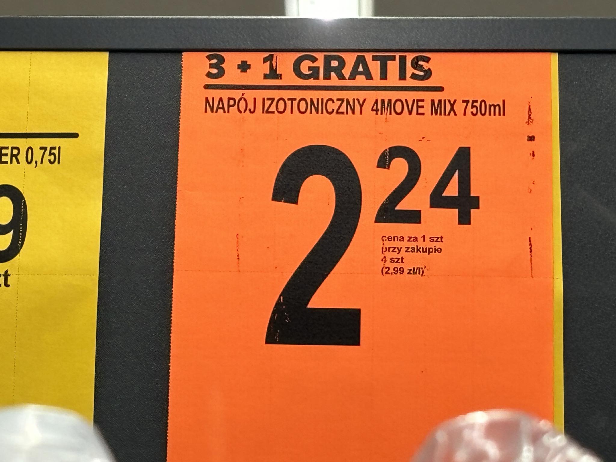 Supermarket Biedronka w Polsce zaskoczył klientów swoją najnowszą superpromocją na napoje izotoniczne oraz energetyzujące. Klienci mogą teraz skorzystać z oferty „3+1 gratis” na napój izotoniczny 4MOVE MIX 750ml, gdzie przy zakupie trzech sztuk, czwarta oferowana jest bez dodatkowych kosztów. Cena za jedną sztukę przy tej promocji wynosi jedynie 2,24 zł, co oznacza znaczną oszczędność w stosunku do standardowej ceny 2,99 zł.