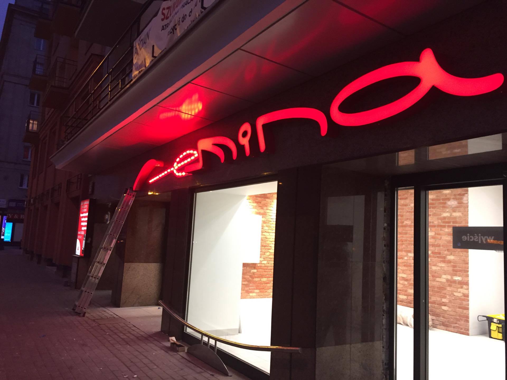 Neon Kina Femina został zdjęty przez nowego najemcę, firmę Jeronimo Martins i wszystko wskazywało na to, że już nie wróci on w al. Solidarności. Okazało się, że założono go ponownie. Mało tego, właściciel Biedronki… wyremontował go lub wymienił na nowy. Trzeba przyznać, że wygląda teraz dużo lepiej.