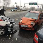 Bielany: zderzenie trzech samochodów. Ranny jeden z kierowców, są utrudnienia