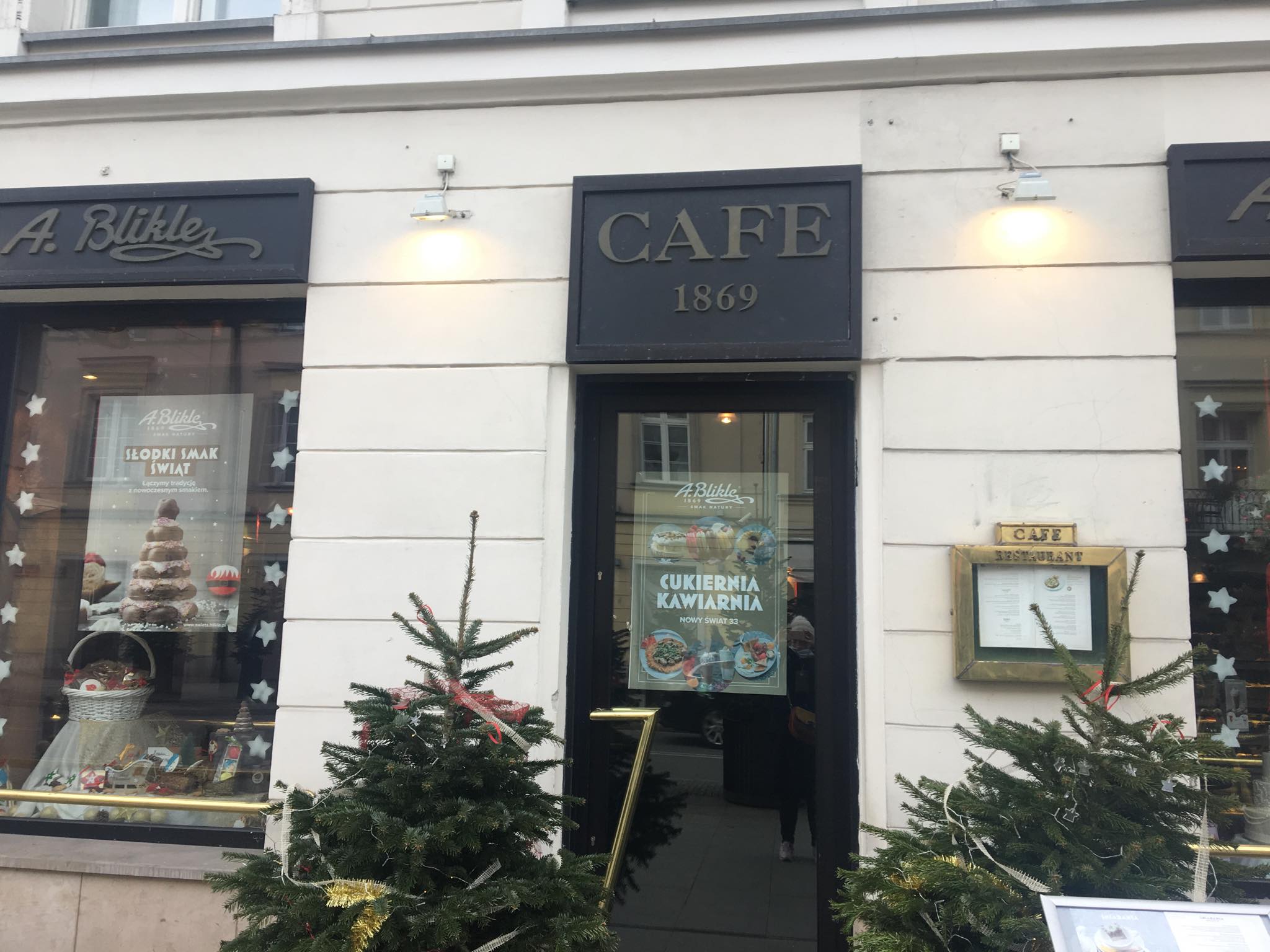 Cukiernia i kawiarnia A. Blikle od dawna znajdowały się na Nowym Świecie. Jeden lokal znajdował się pod numerem 35, drugi pod numerem 33. Teraz połączono je w spójną całość.