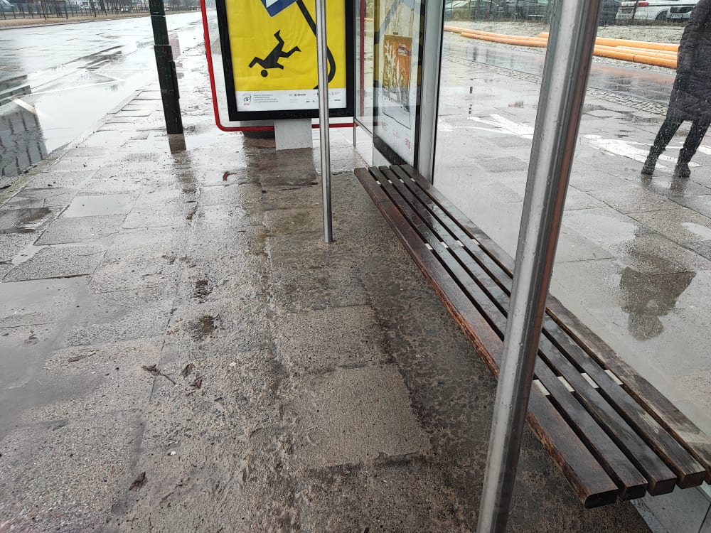 „Moja mama jest po operacji i nie może długo stać. Niestety skorzystanie z ławki nie jest możliwe (zresztą nie pierwszy raz), bo jest mokra i ubłocona. Wszystko dlatego, że geniusz projektujący przystanki, wróć, stojaki reklamowe, nie pomyślał, że dziura w dachu nad ławką nie jest jednak dobrym pomysłem” – dodaje nasza Czytelniczka. Zgadzacie sie z nią?
