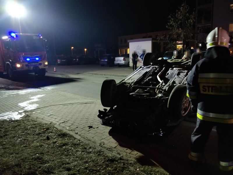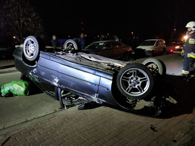 BMW uderzyło w dwa auta i dachowało. Kierowca kompletnie pijany