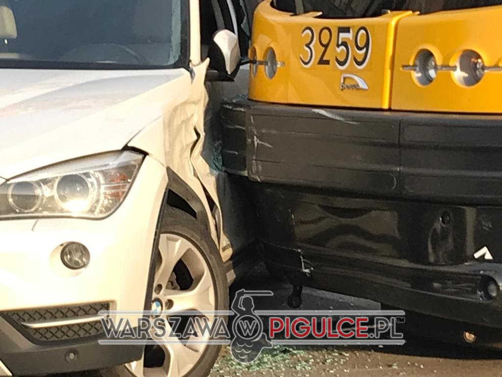 Parę minut temu, na skrzyżowaniu Żytniej i Okopowej, kierowca samochodu marki BMW wjechał pod nadjeżdżający tramwaj linii 1.