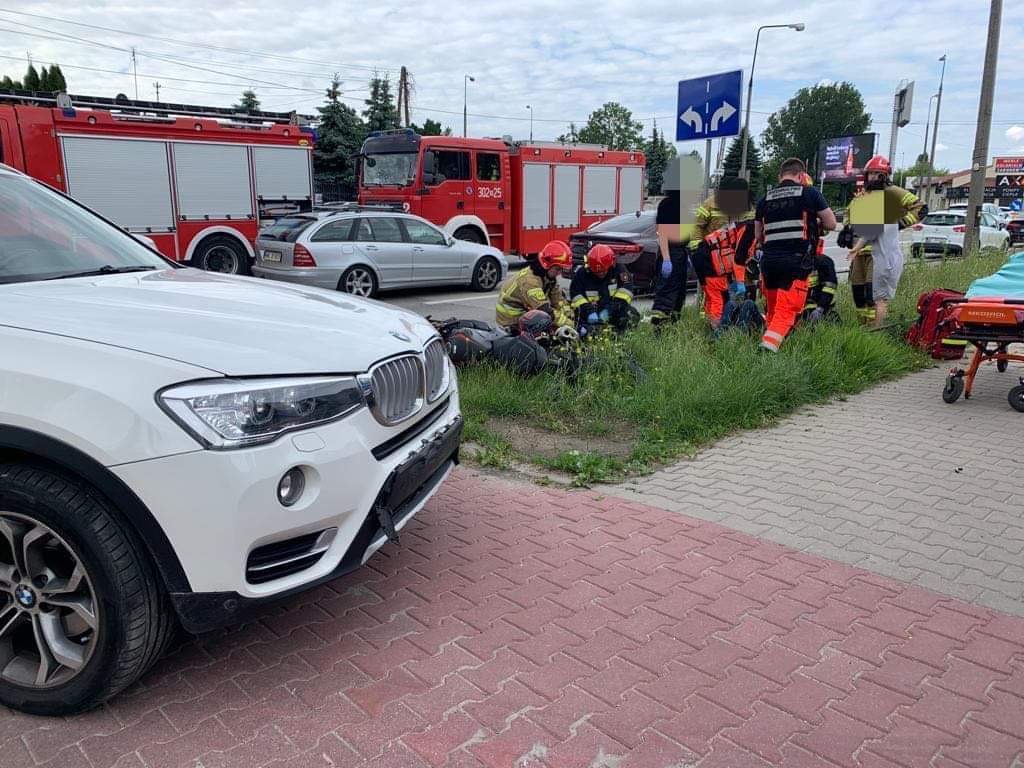 BMW zderzyło się z motocyklistą! Jedna osoba trafiła do szpitala