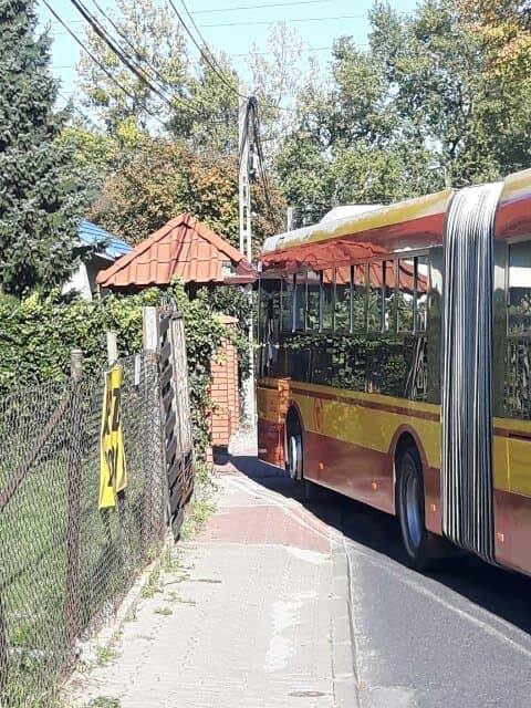 Boznańskiej: Autobus wjechał w bramę. Policja na miejscu