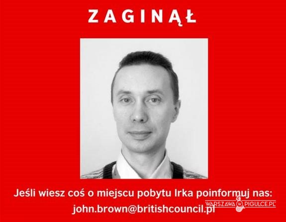 Wszelkie informacje, które moga nam pomóc w jego odnalezieniu prosimy przesyłać na: john.brown@britishcouncil.