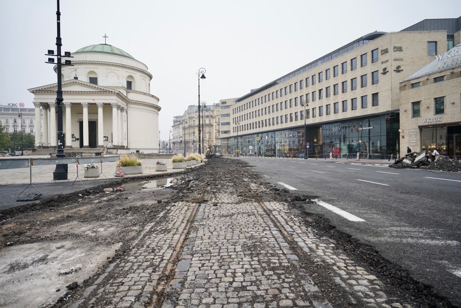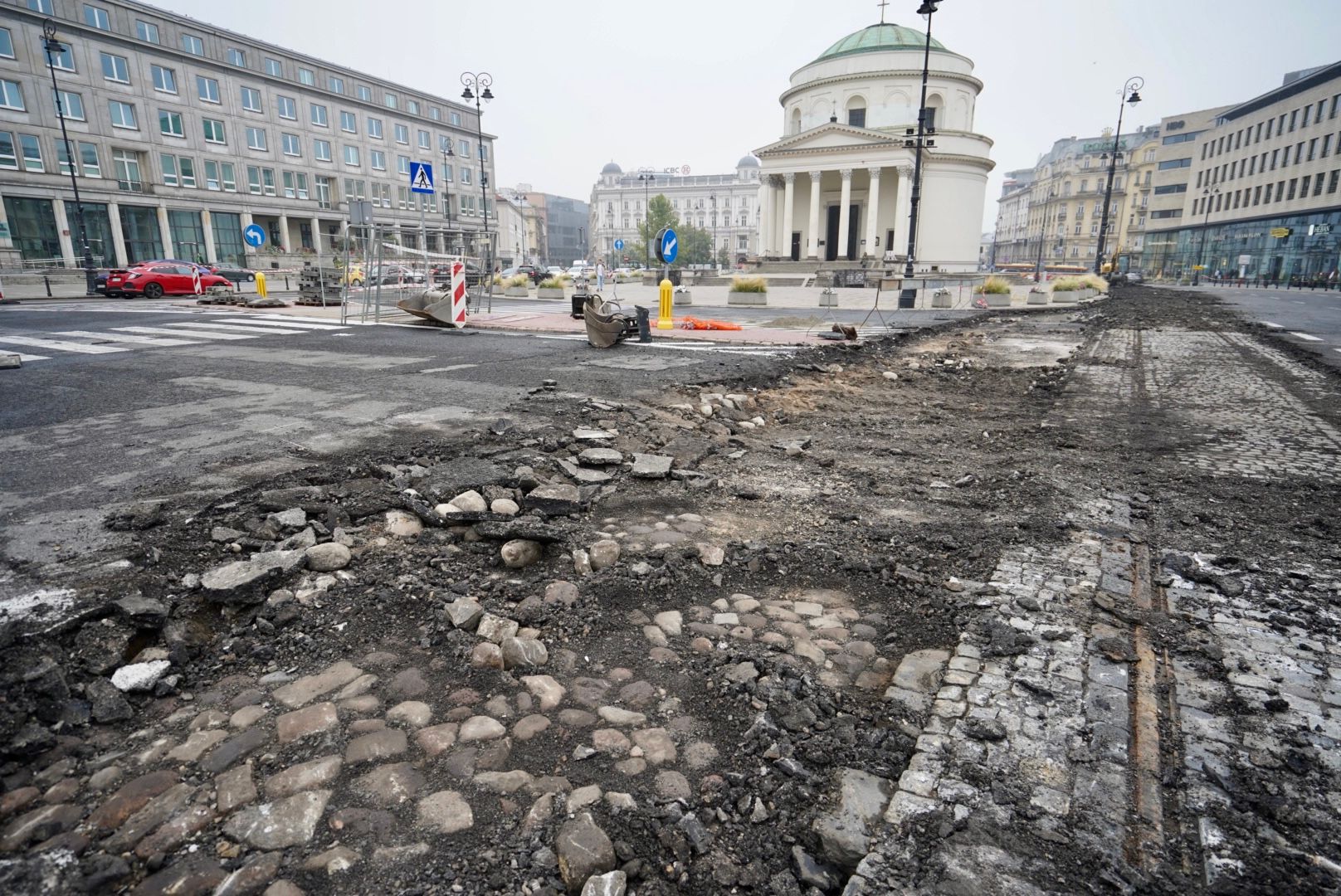 Bruk i tory odkryte na Placu Trzech Krzyży!