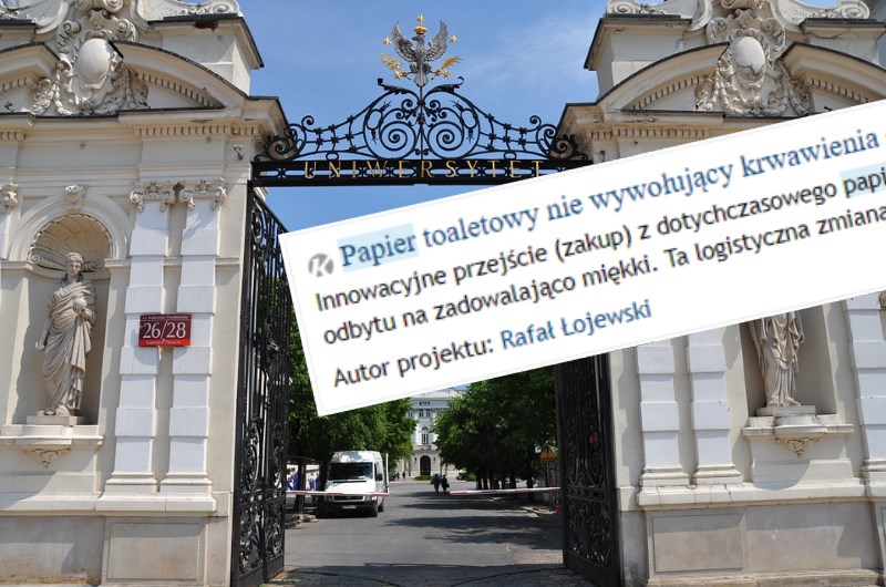 Uniwersytet Warszawski ma własny budżet partycypacyjny w którym studenci mogą wskazywać projekty ważne dla instytucji. Są więc tak niezbędne projekty, jak zakup komputerów do biblioteki czy defibrylatorów, które mogą uratować komuś życie. Jest tam też projekt o… miękkim papierze toaletowym.
