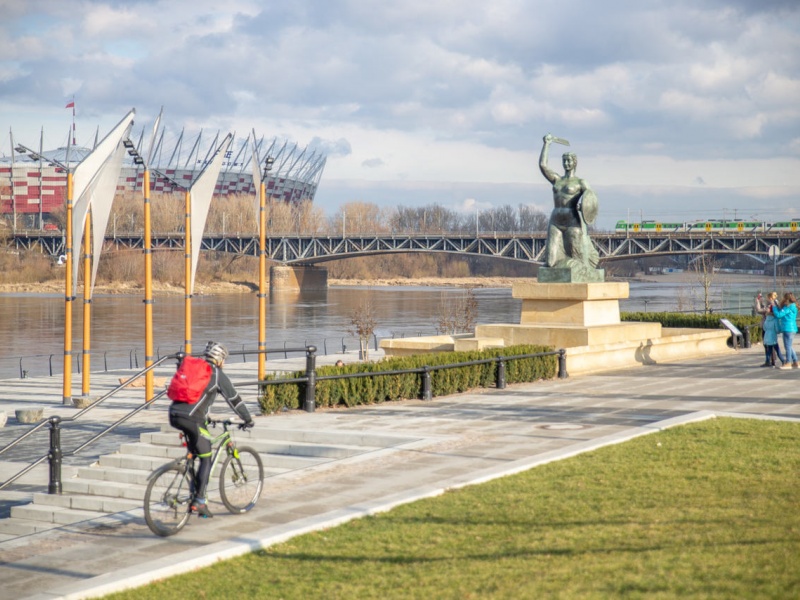 Pod mostem Świętokrzyskim na Powiślu miłośnicy sportu mogą skorzystać ze strefy street workoutu oraz skateparku. Fani wypoczynku nad Wisłą mają do dyspozycji cztery hamaki, które powstały w ramach projektu z budżetu partycypacyjnego. Przy deptaku, po kaskadowej fontannie płynie woda. Warszawscy ogrodnicy uruchomili także kraniki wypuszczające orzeźwiającą mgiełkę przy pomniku Syreny. Podpory mostu udekorowane są artystyczną mozaiką. Skwer u zbiegu ul. Tamka, Wybrzeża Kościuszkowskiego i ul. Zajęczej ozdobiły dęby, cisy i kwiaty.