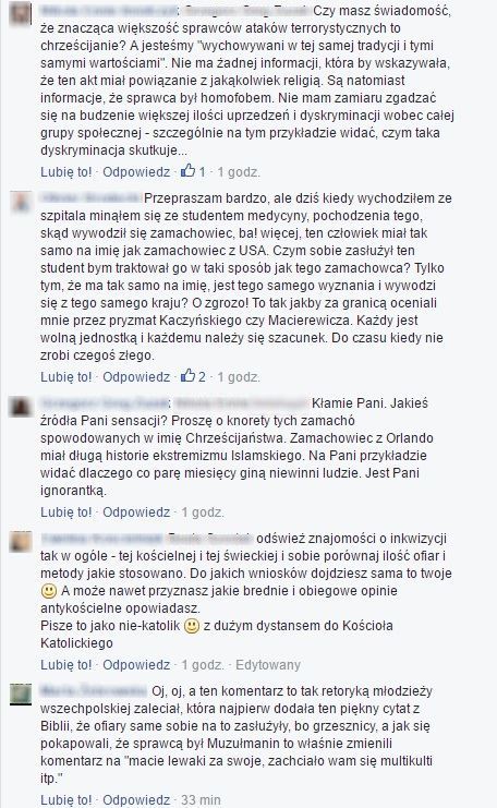 Pod wpisem organizacji wyrażającym solidarność z ofiarami internauci nie szczędzą krytyki samej organizacji. Wywołało to bardzo ciekawą dyskusję: