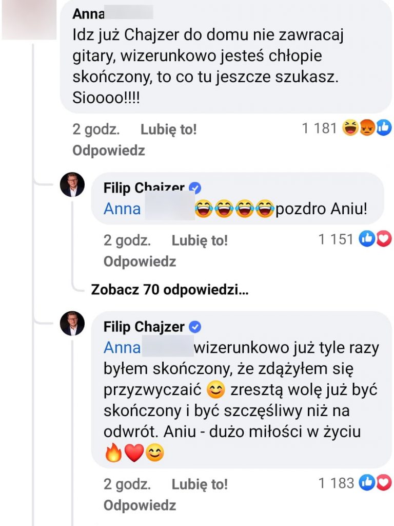 Burza pod postem Filipa Chajzera! Ostra dyskusja z internautami