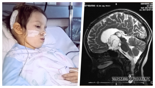Potem zapadła dramatyczna diagnoza – gwieździak, wielkości dużego orzecha włoskiego w samym środku mózgu! Lekarze usunęli część guza, pozostałość jest nieoperacyjna. 2 marca 2016r – pierwsza chemioterapia i niemal tuż po niej – potężny wylew krwi z guza. Pobyt na Oddziale Intensywnej Terapii w śpiączce farmakologicznej. Strach o życie córeczki… Tego szoku, strachu i bezradności nie da się opisać…