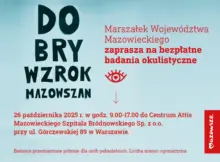 Samorząd województwa mazowieckiego zaprasza dorosłych mieszkańców Warszawy, a w szczególności dzielnicy Wola, na darmowe przesiewowe badania wzroku. Aby wziąć w nich udział, nie jest potrzebne skierowanie od lekarza.