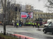 Na Saskiej Kępie tłumy gapiów obserwują grupę policjantów kierujących ruchem. Jak się okazało to ćwiczenia akademii policyjnej mające na celu przygotowanie przyszłych adeptów sztuki policyjnej do kierowania ruchem.