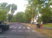 Są kierowcy i ci, którzy wcale nie powinni zasiadać za kierownicą. Tak jest i tym razem. Kierowca zatrzymuje się przed przejściem, by przepuścić matkę z dzieckiem, a gdy