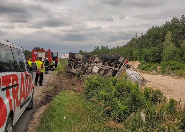 W okolicach Woli Karczewskiej na Drodze Krajowej nr 17 cementowóz wpadł do rowu. Na miejscu pracowały służby.