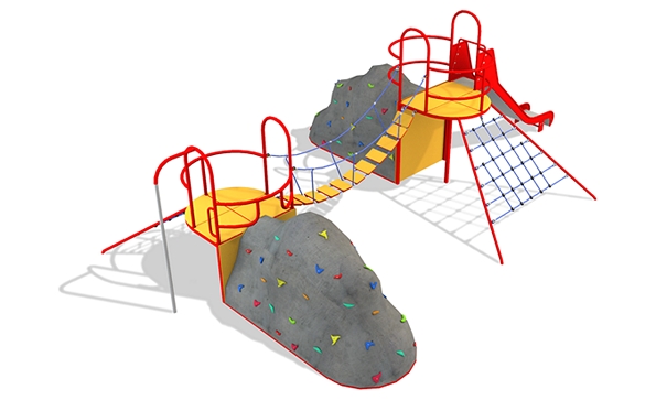 1. wielofunkcyjny zestaw zabawowy, zawierający zjeżdżalnię, wieże, skałki wspinaczkowe, zjazd strażacki, pomost oraz dwie ścianki linowe – 42 000,00