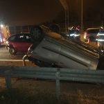 Na trasie S2, na wysokości zjazdu w ul. Puławską, doszło do zderzenia, a następnie dachowania samochodu osobowego.